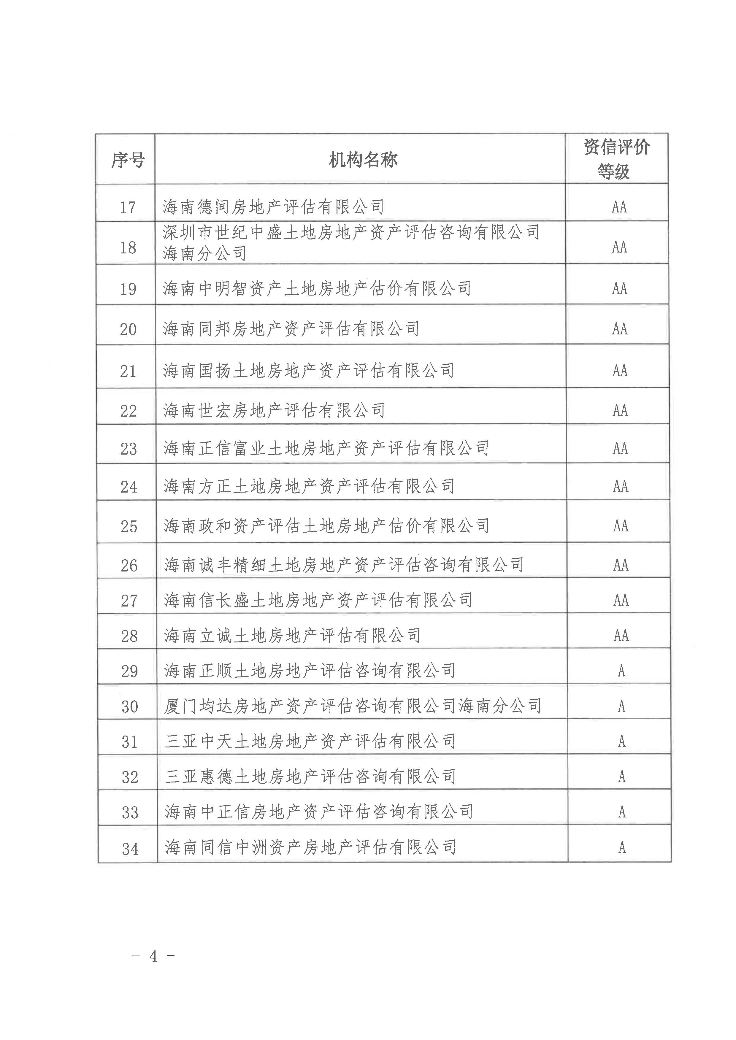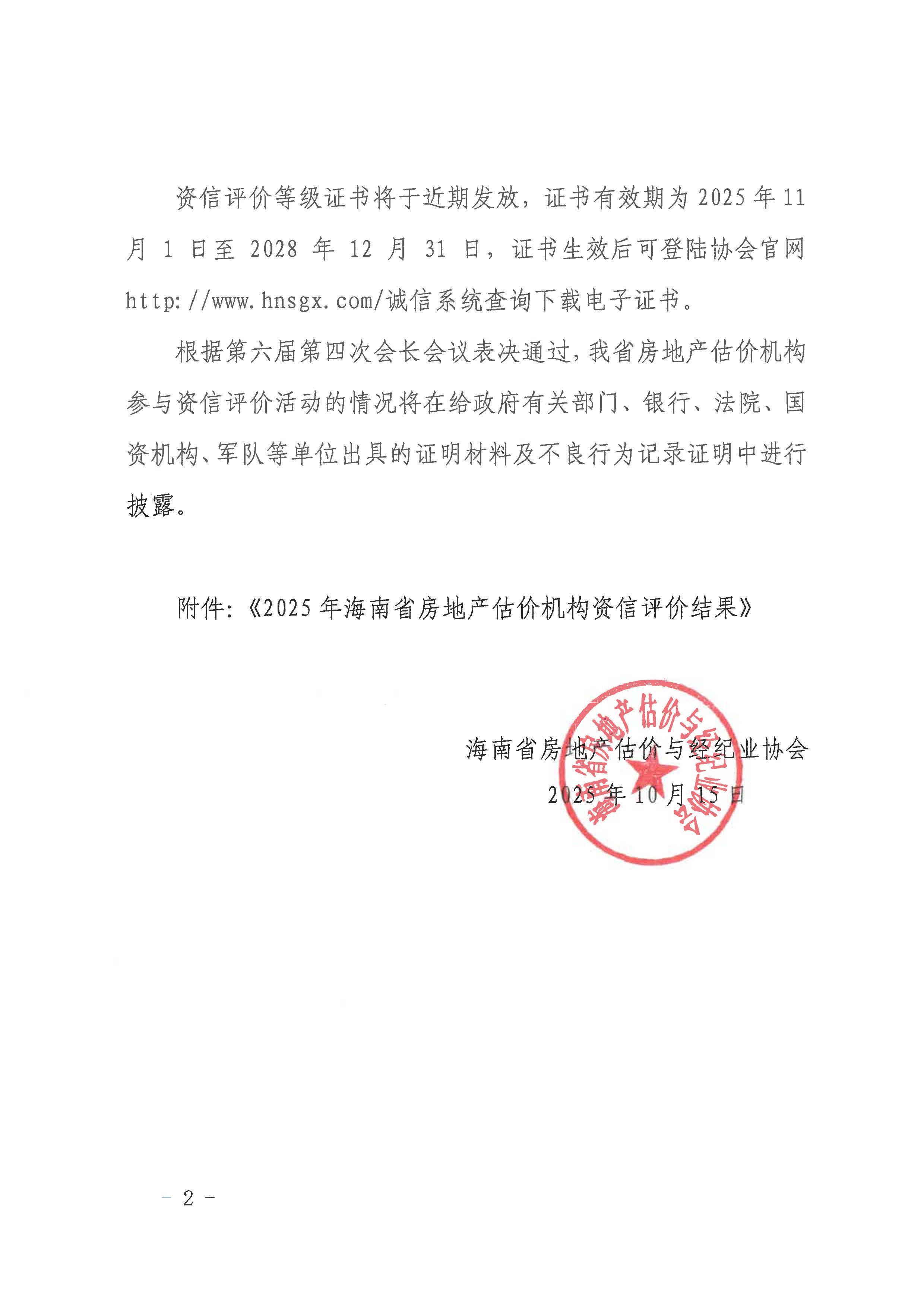 关于印发2025年海南省房地产估价机构资信评价结果的通知