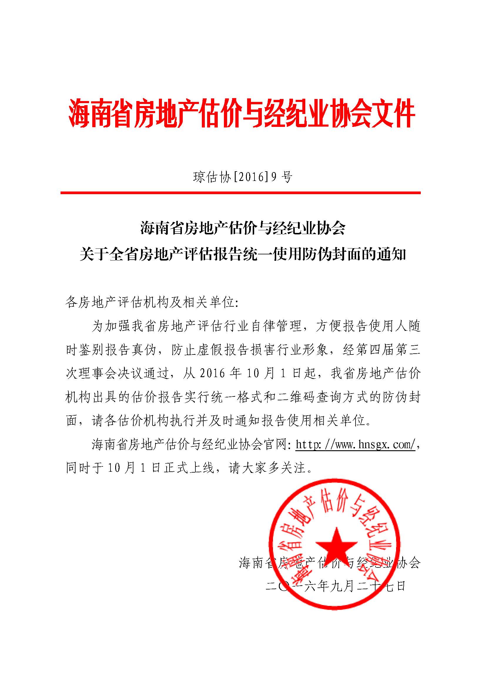 关于全省房地产评估报告统一使用防伪封面的通知