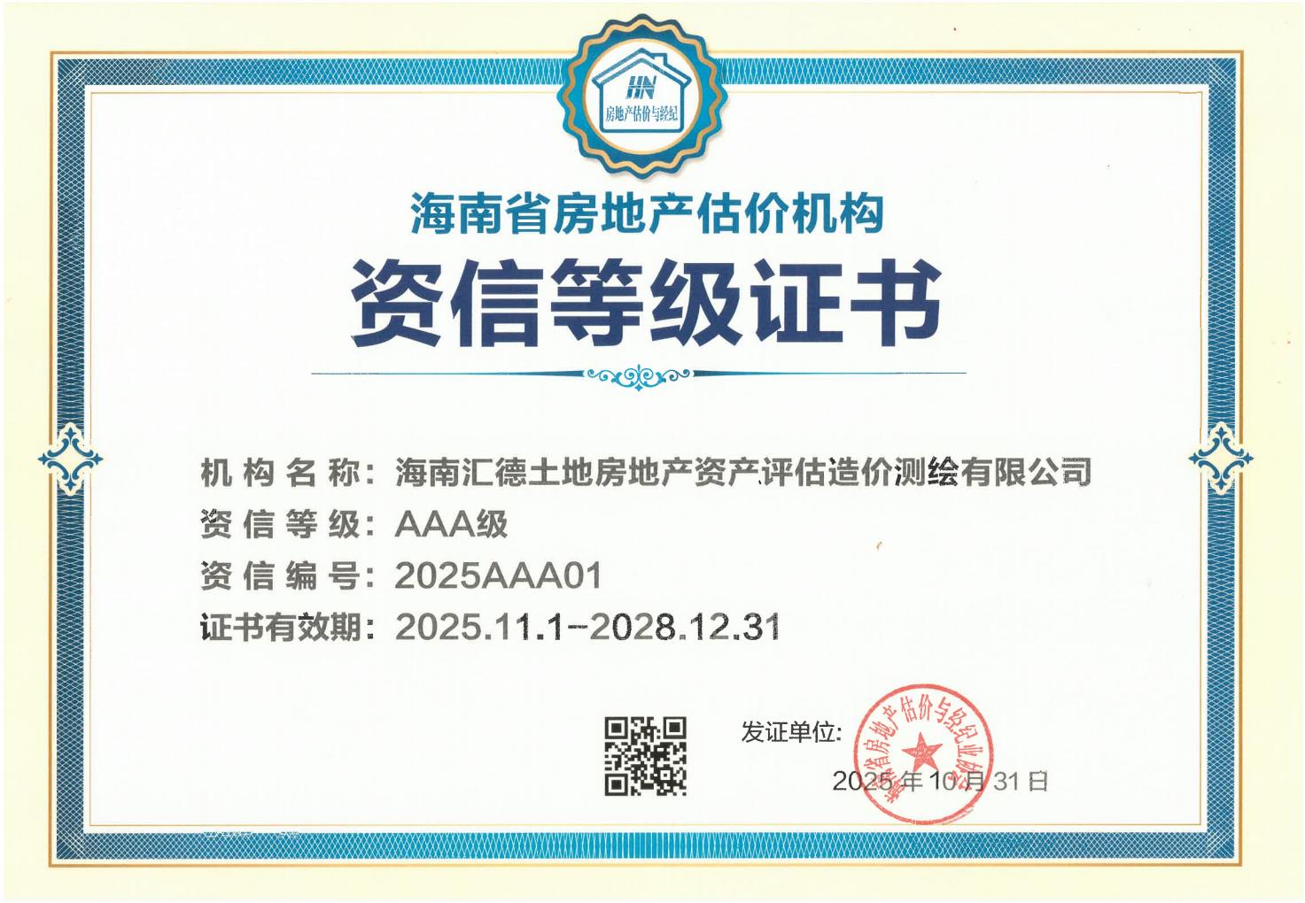 海南汇德土地房地产资产评估造价测绘有限公司2025AAA01