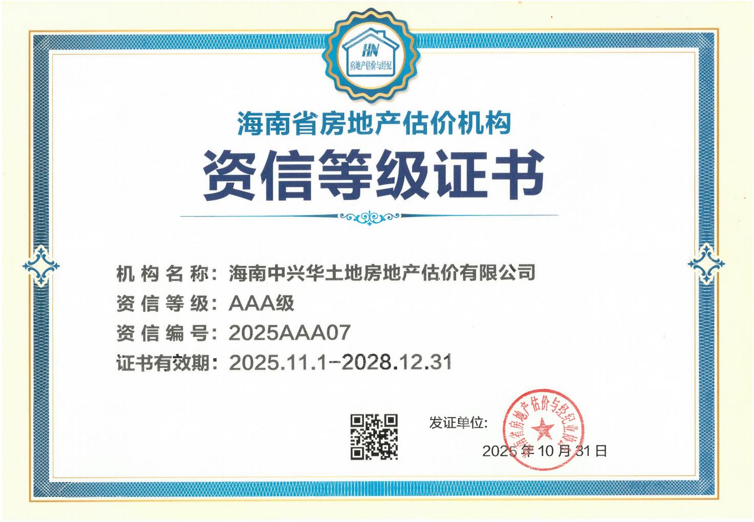 海南中兴华土地房地产估价有限公司2025AAA07