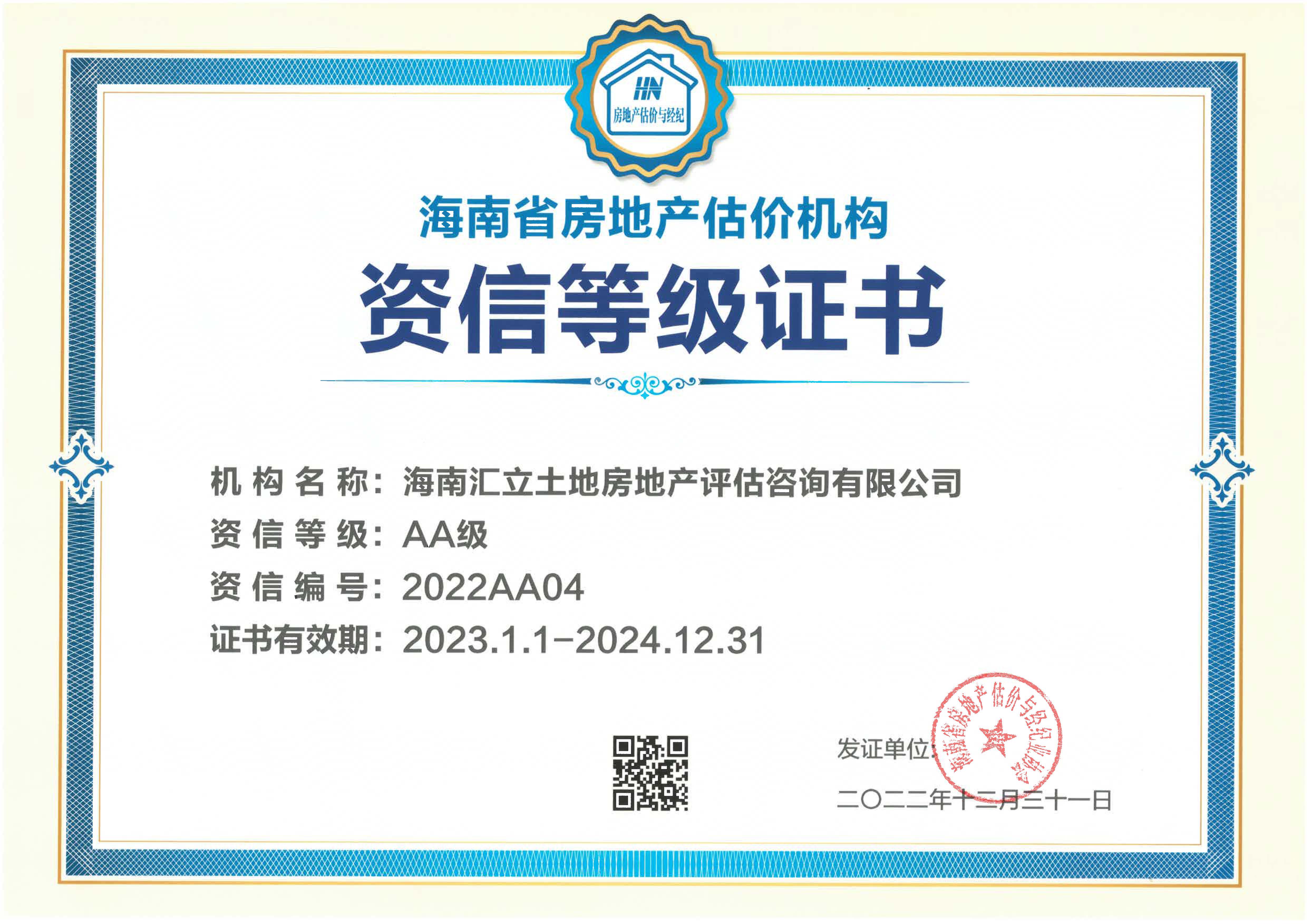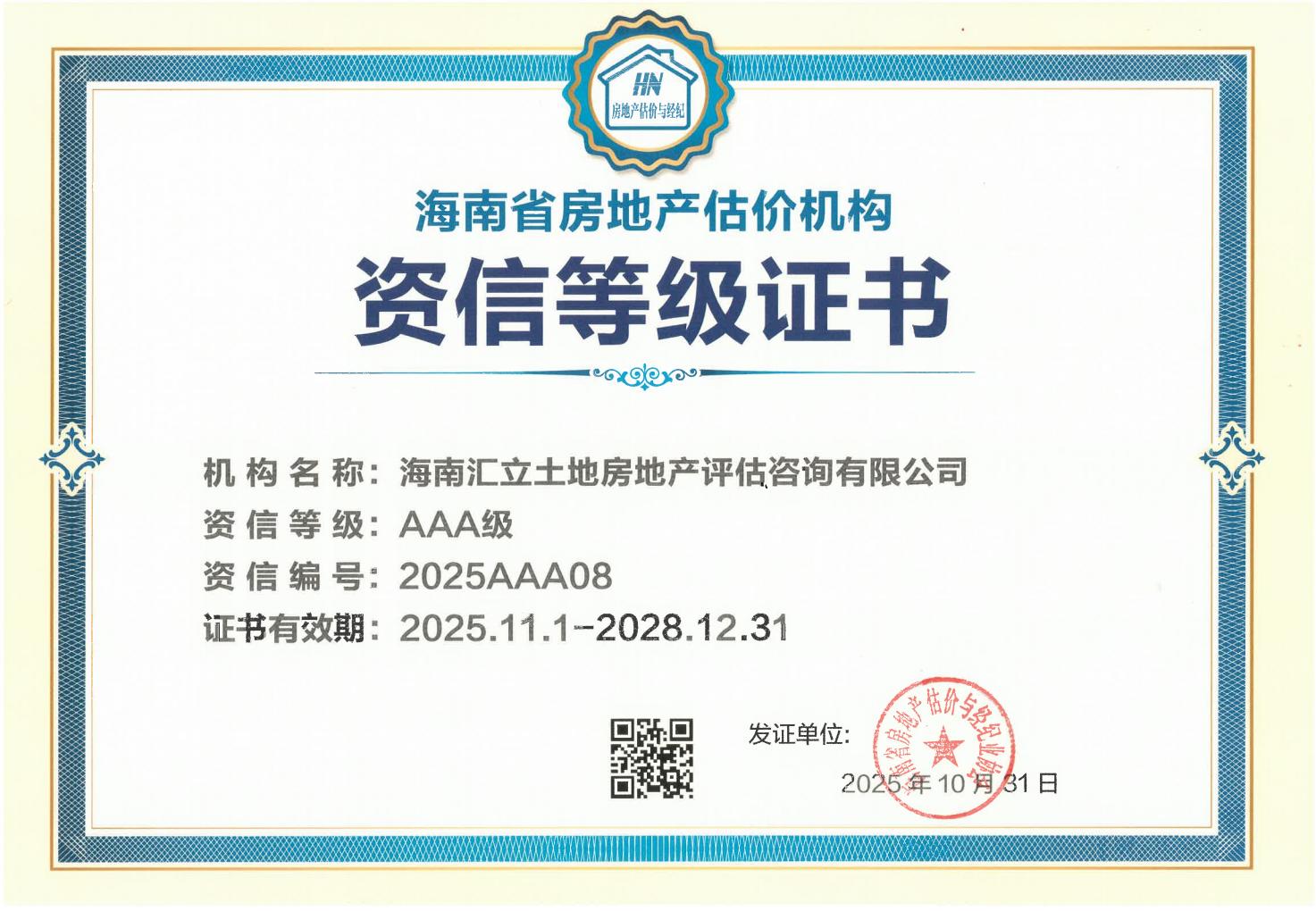 海南汇立土地房地产评估咨询有限公司2025AAA08